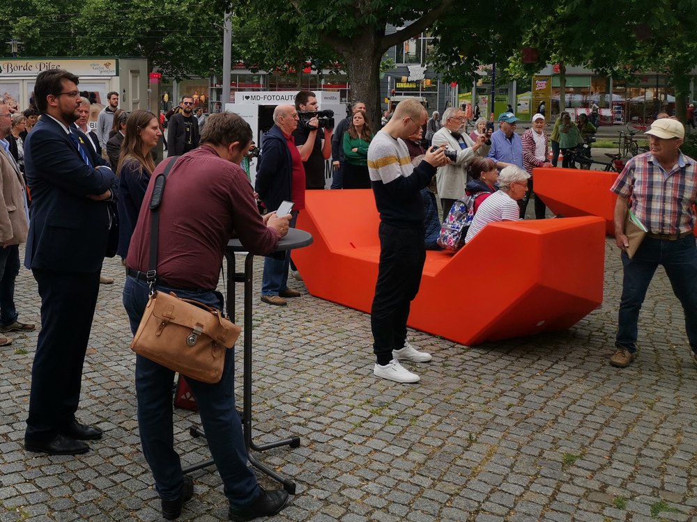 Der Oberbürgermeister wird beauftragt nach dem 12. Juli zu veranlassen, einen Teil der sich im Eigentum der Stadt befindlichen Sitzmöbel (mindestens 8), sowie ggf. einige der Installationen des Freiraumlabors, zur vorübergehenden Nutzung auf dem Domplatz aufzustellen.