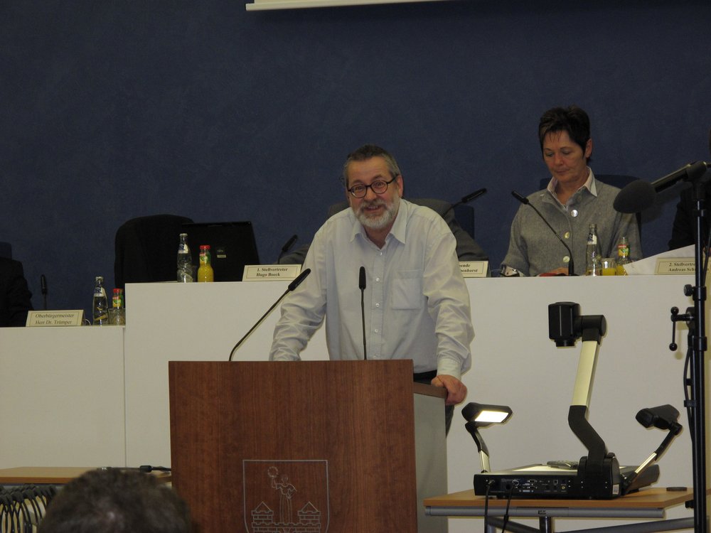 Auch mein Dank gilt all denen, die – haupt- und ehrenamtlich – an der Erarbeitung dieses Haushaltes beteiligt waren und sind, auch dafür, dass unser Haushalt wieder ein ausgeglichener ist, obwohl die Rahmenbedingungen alles andere als komfortabel sind.